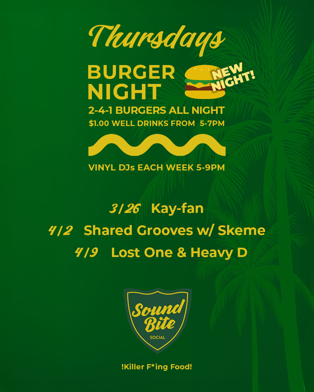 Our restaurant Sound Bite Social is open Wednesday-Saturday, 5p-1a. And Sunday-Tuesday during events. Entrance to the restaurant is located on the north side of the building, and is accessible without a show ticket, or with from inside the venue.