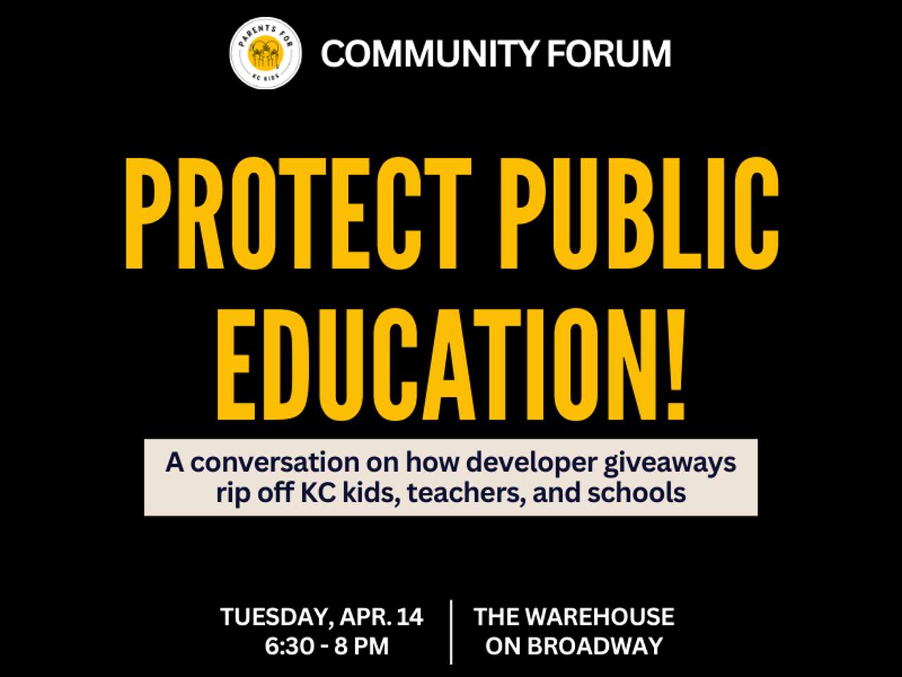 If we’re going to ensure a good education for kids and fair wages for teachers, the time has come for Kansas City to end unnecessary and outrageous taxpayer handouts for development projects. Join us at Protect Public Education town hall on Tuesday, April 14 at 6pm to hear from teachers, school administrators and parents about the harm tax incentives inflict on our public schools, and how the city can take action against outrageous tax incentives to support public education.