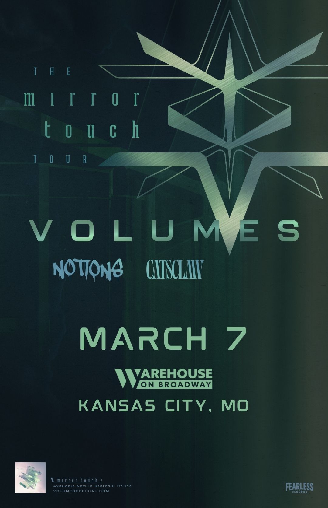 VOLUMES — The Mirror Touch Release Tour: Los Angeles Metalcore heavyweights Volumes are hitting the road in support of their long-awaited new album, Mirror Touch, and they’re bringing a career-spanning set built for day-one fans and new listeners alike. This tour marks a new chapter for the band, showcasing the refined sound of Mirror Touch with a batch of brand-new songs performed live for the first time. Volumes will also deliver a greatest-hits set featuring iconic tracks from No Sleep, Via, and Happier? Support by Notions (Dallas, Texas) & Catsclaw (Omaha, NE).